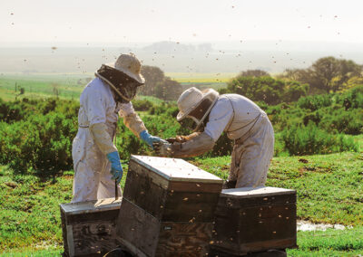 Together, they champion sustainable beekeeping and industry education through their talks and presentations. Their combined knowledge creates a unique approach that balances traditional beekeeping practices with modern sustainable techniques, ensuring The Cape Town Honey Company remains at the forefront of ethical and innovative honey production.